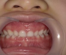 診断名:上下顎前歯部叢生を伴う乳歯列過蓋咬合です。
