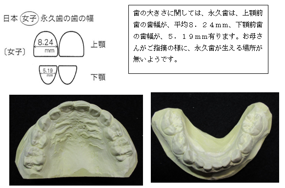主訴)①乳歯の状態で、下顎前歯が重なっている。永久歯の生える場所が無いので心配です。