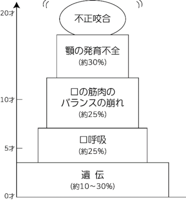環境因子→かみ合わせ・食生活・呼吸・寝方・指しゃぶり・嚥下(飲み込みかた)・咬み方・鼻づまり等です。
