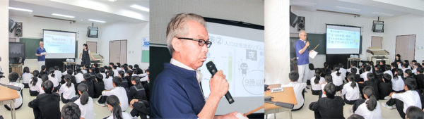 歯科検診に先立ち、中学2年生に、歯の講話をしました。
