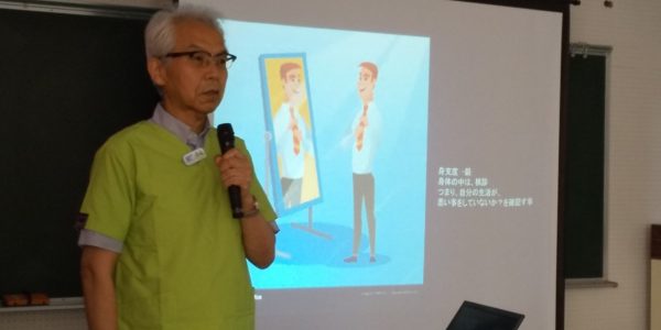 中学1年生、150名の生徒さんを対象に「見直そう!自分たちの生活習慣!」といったテーマでお話しました。